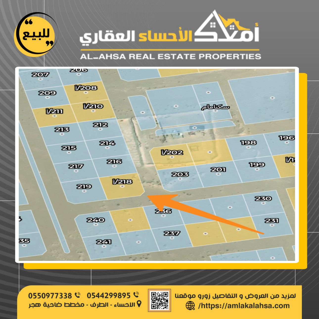 للبيع ارض في الحي السادس بضاحية هجر ارض رقم 218 \ أ مساحة 895 مضافة شارع عرض 15 * 15 ...