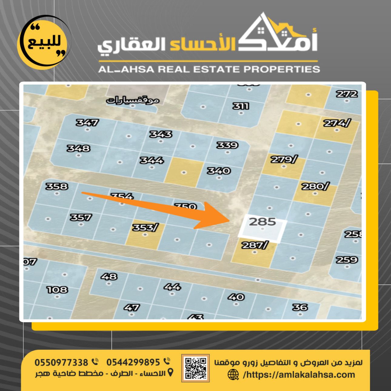للبيع ارض في الحي التاسع بضاحية هجر ارض رقم 285 \ أ مساحة 720 بعد الاضافة شارع عرض 15 الاطوال ...