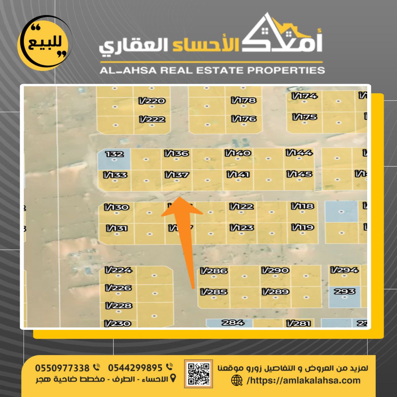 للبيع ارض في حي الرياض بالهفوف ارض رقم 137 \ أ مساحة 750 شارع عرض 15 الاطوال 25 * 30 ...