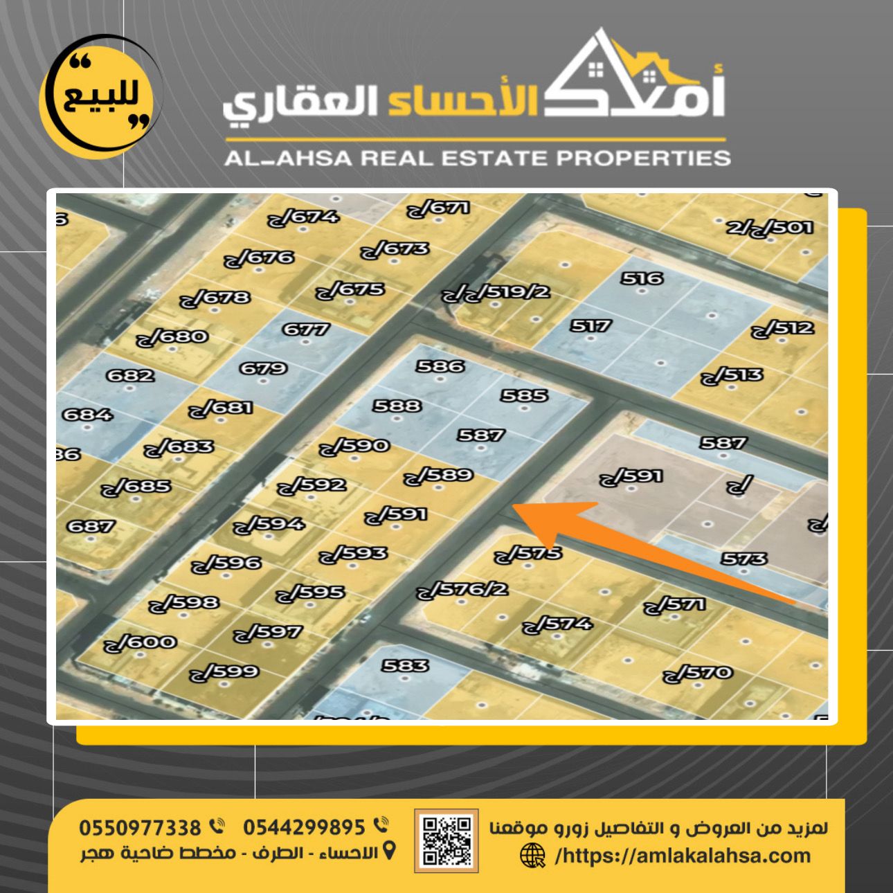 للبيع ارض في الحي الاول بضاحية هجر ارض رقم 589 \ ج مساحة 750 مضافة شارع عرض 15 شرقا الاطوال ...