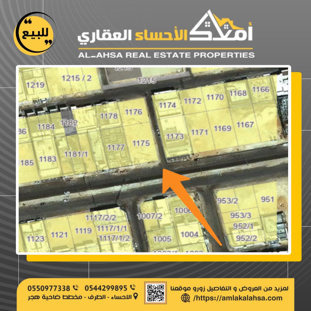للبيع ارض في حي جوهرة الهادي ارض رقم 1175 مساحة 933 شارع عرض 40 * 8 الاطوال 23,5 * 40 ...