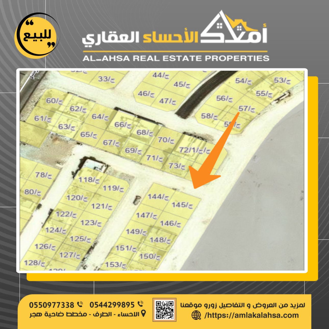 للبيع ارض في حي جواثا ارض رقم 145 \ ج المساحة 567 شارع عرض 15 * 15 سعر المتر 1500