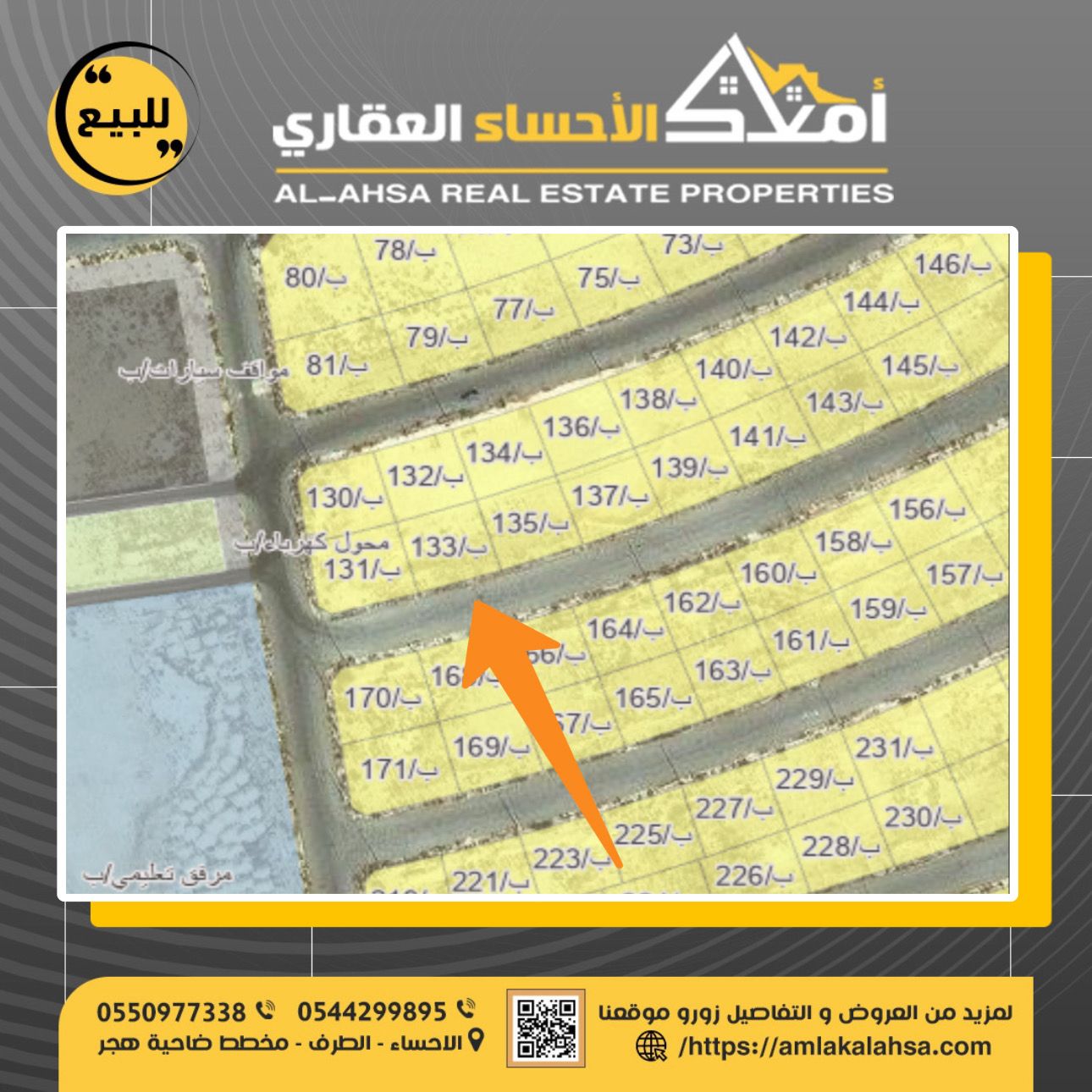 للبيع ارض في حي الدانة بالهفوف ارض رقم 133 \ ب مساحة 420 شارع عرض 15 جنوب سعر المتر 940 ...