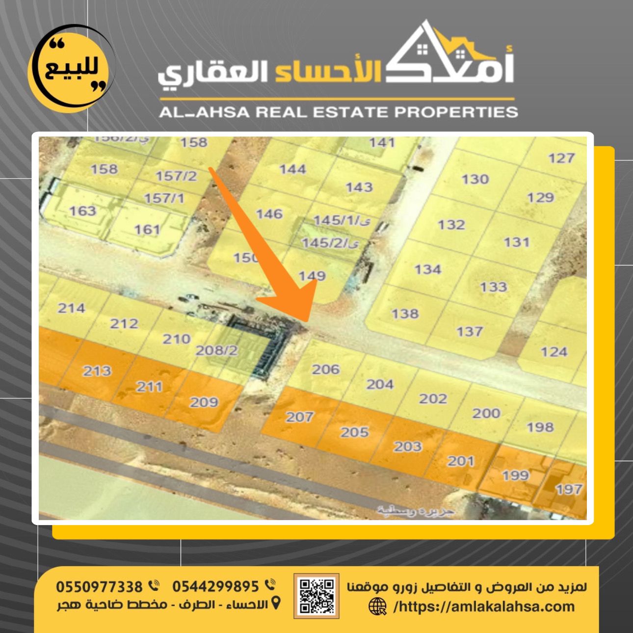 للبيع نصف ارض في الحي الثامن بضاحية هجر ارض رقم 202 \ أ مساحة 400 شارع عرض 15 السعر 225,000