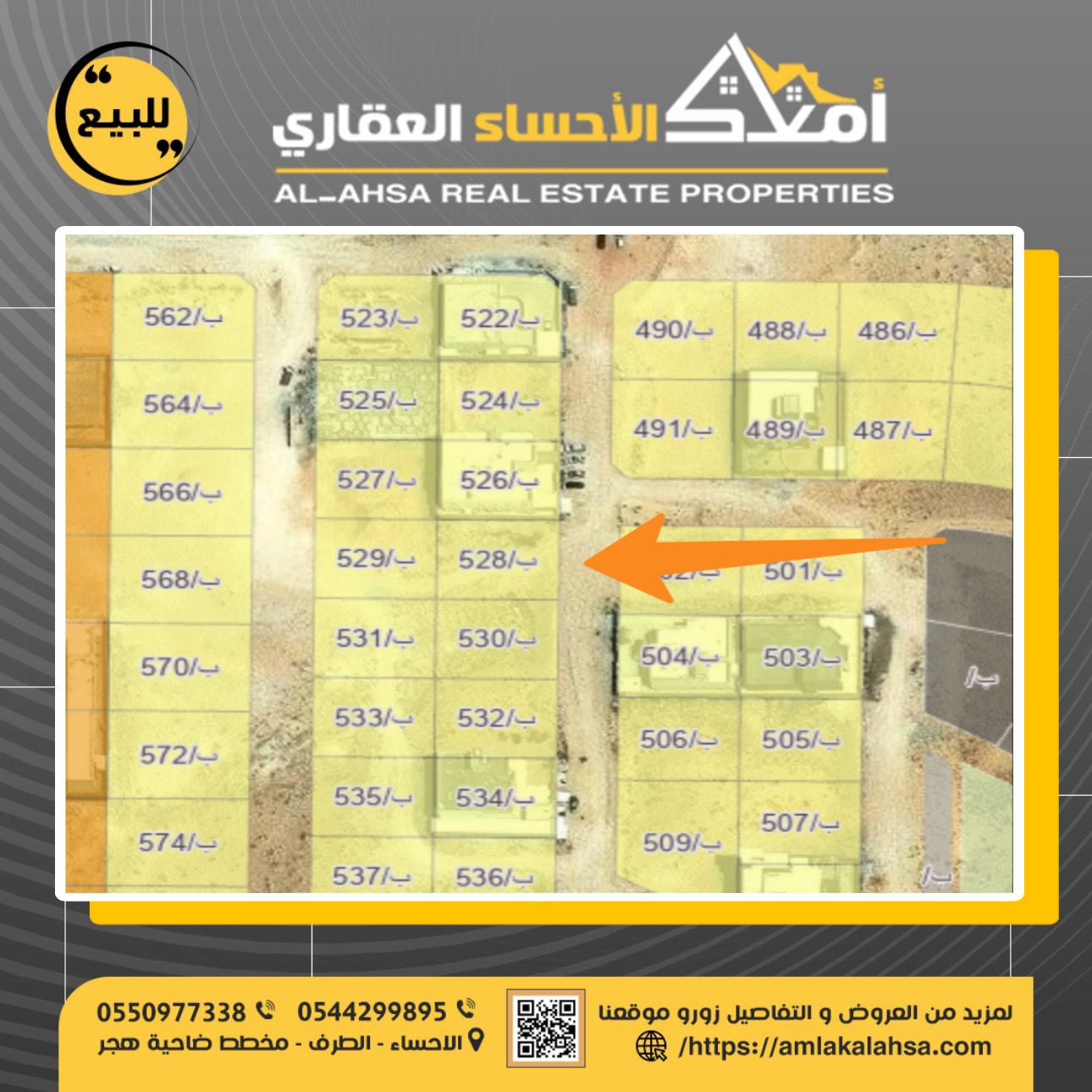للبيع ارض في الحي الخامس بضاحية هجر ارض رقم 528 \ ب مساحة 720 بعد الاضافة شارع عرض 15 الاطوال ...