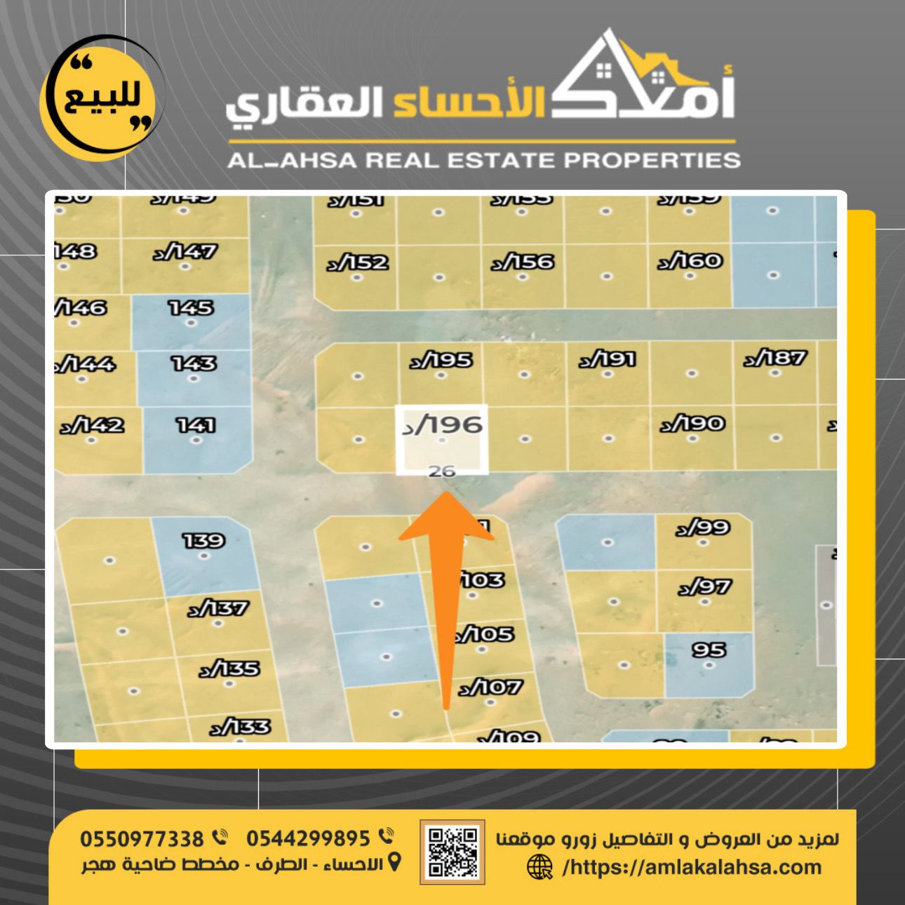 للبيع ارض في حي الرياض بالهفوف ارض رقم 196 \ د مساحة 780 شارع عرض 20 الاطوال 26 * 30 ...