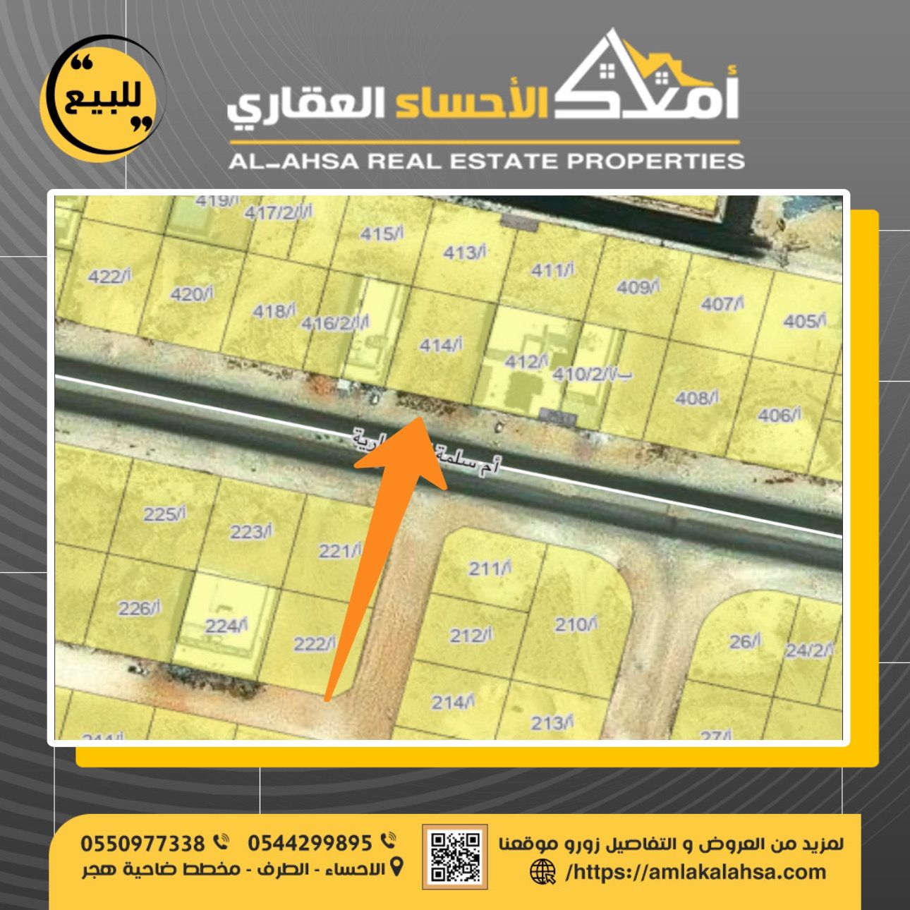 للبيع ارض في الحي الثاني بضاحية هجر ارض رقم 414 \ أ مساحة 910 مضافة شارع عرض 40 الاطوال 26 …