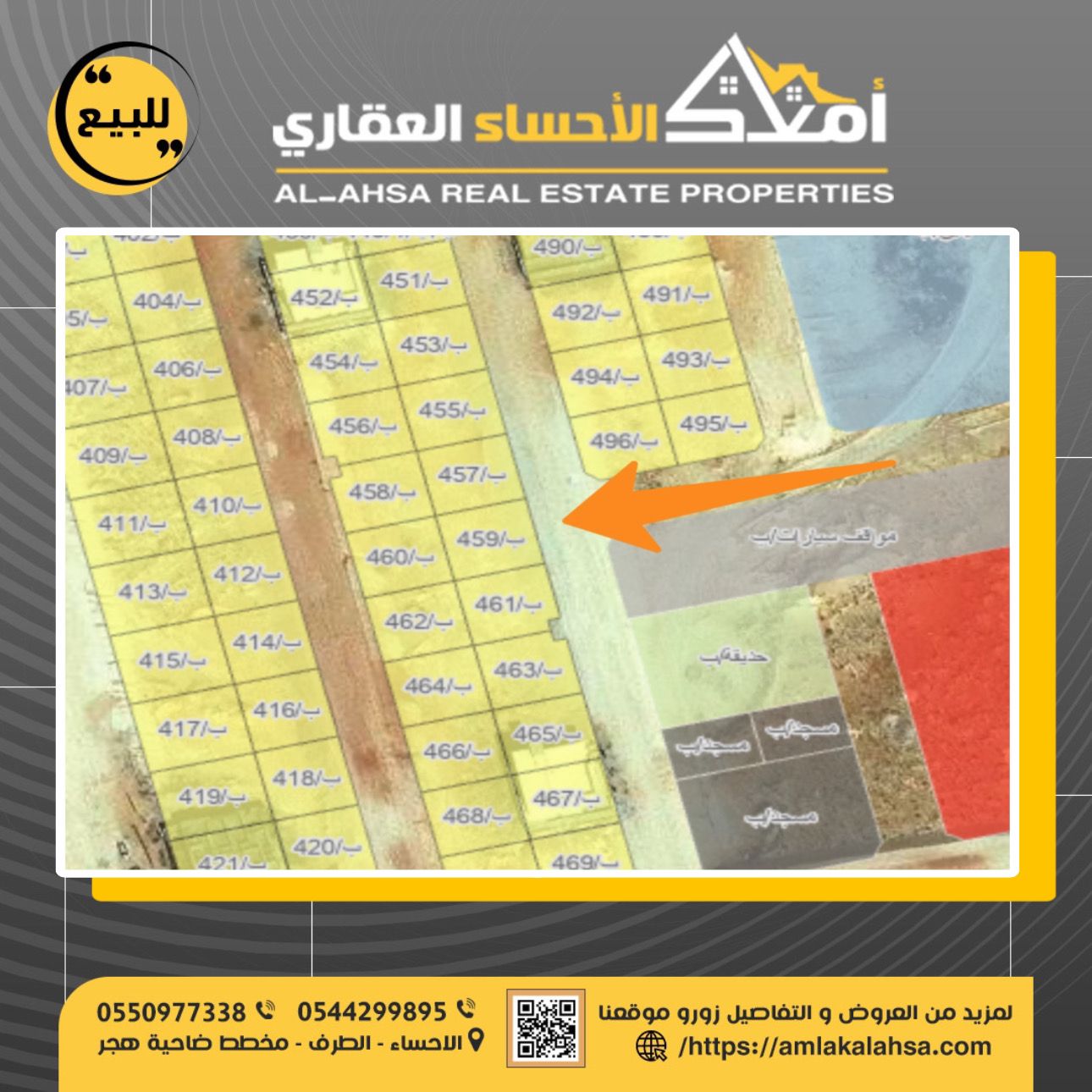 للبيع ارض في حي الامراء بالهفوف ارض رقم 459 \ ب مساحة 408 شارع عرض 15 شرقا الاطوال 19 * …