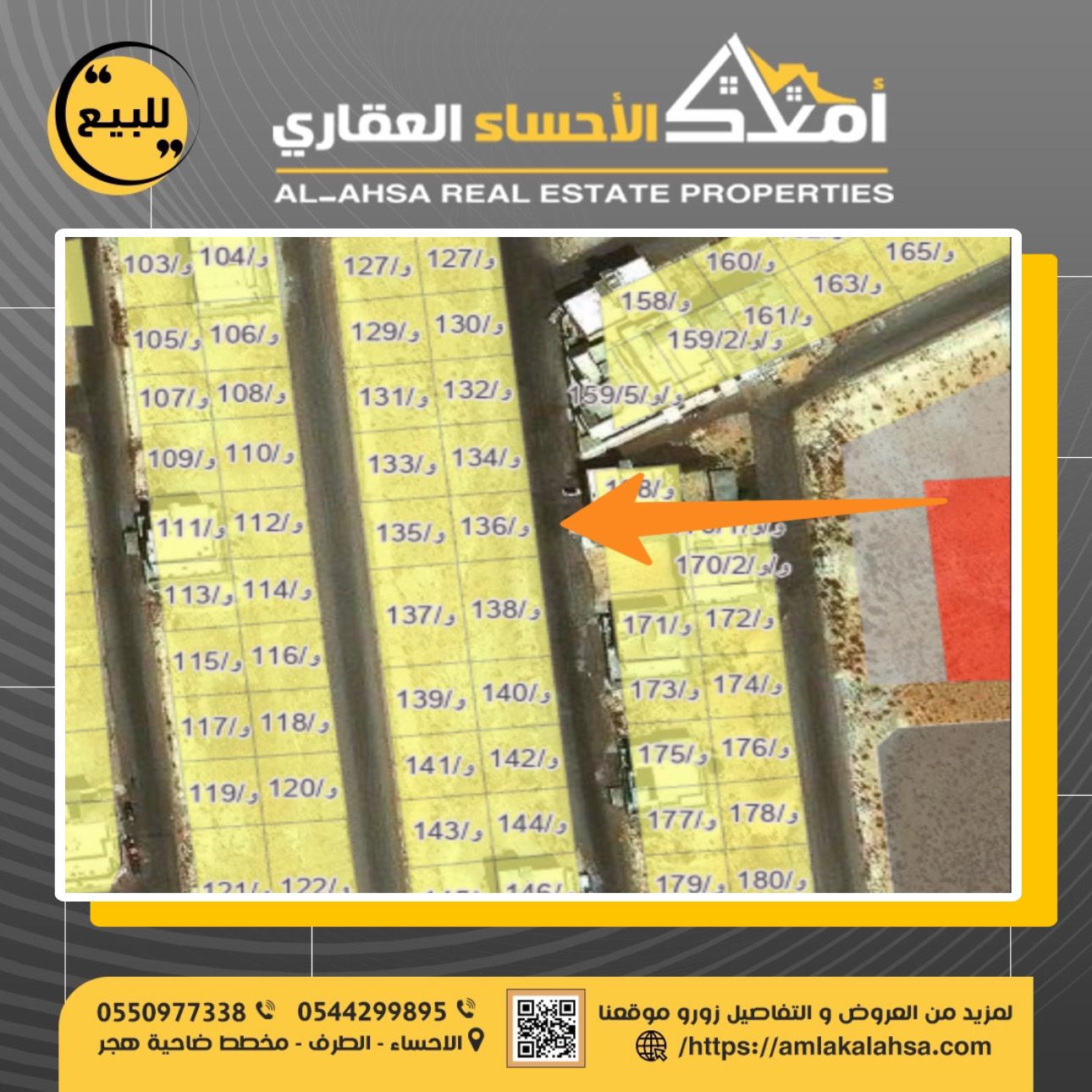 للبيع ارض في حي الحمراء الثالث بجنوب الهفوف ارض رقم 136 \ و مساحة 420 شارع عرض 15 شرقا الاطوال …