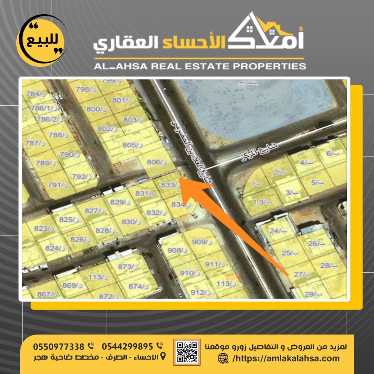 للبيع ارض في حي الحمراء 2 بجنوب الهفوف ارض رقم 806 \ ز مساحة 400 شارع عرض 30 * 15 …