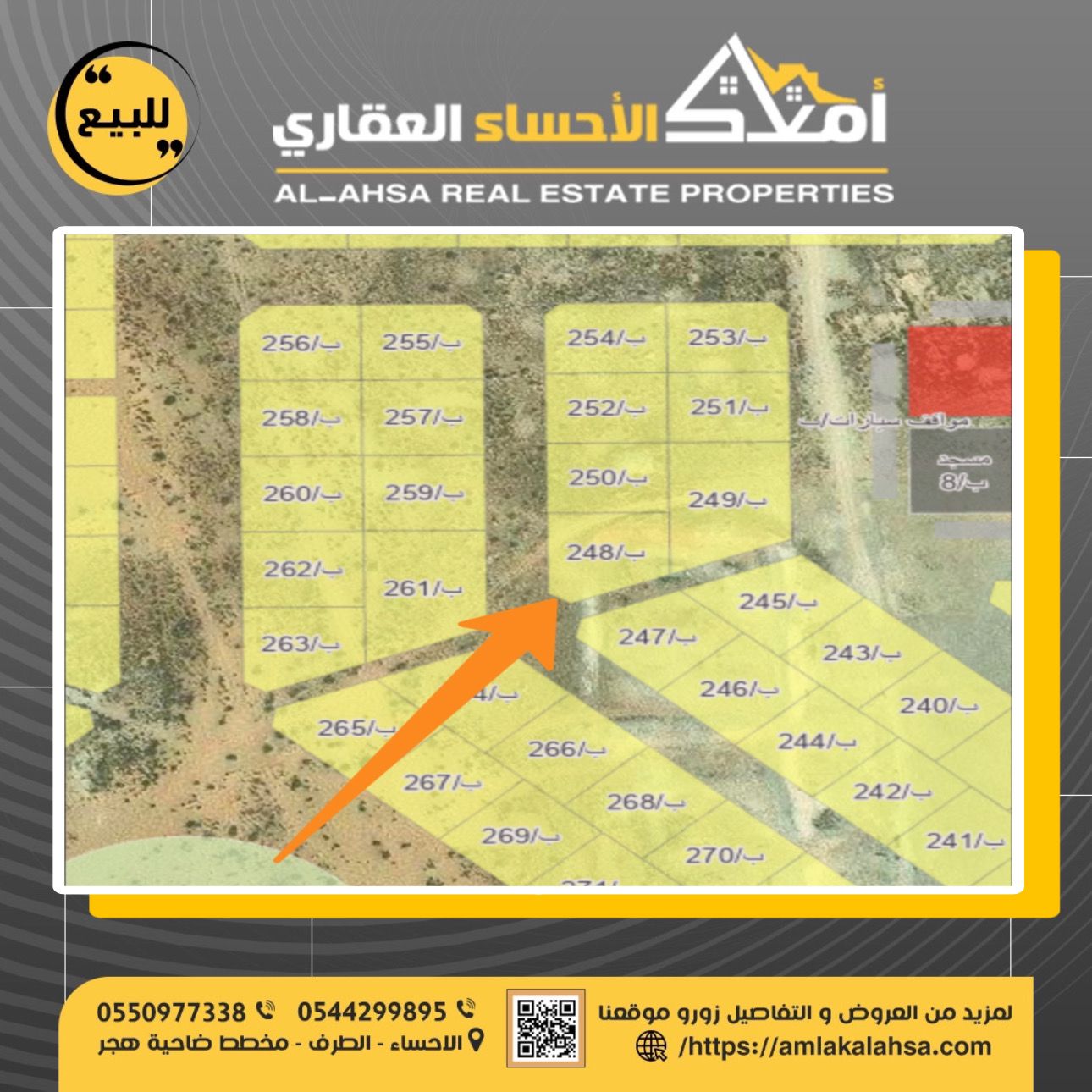 للبيع ارض في حي الرياض بالأحساء ارض رقم 248 \ ب مساحة 854 شارع عرض 15 * 6 السعر 330,000