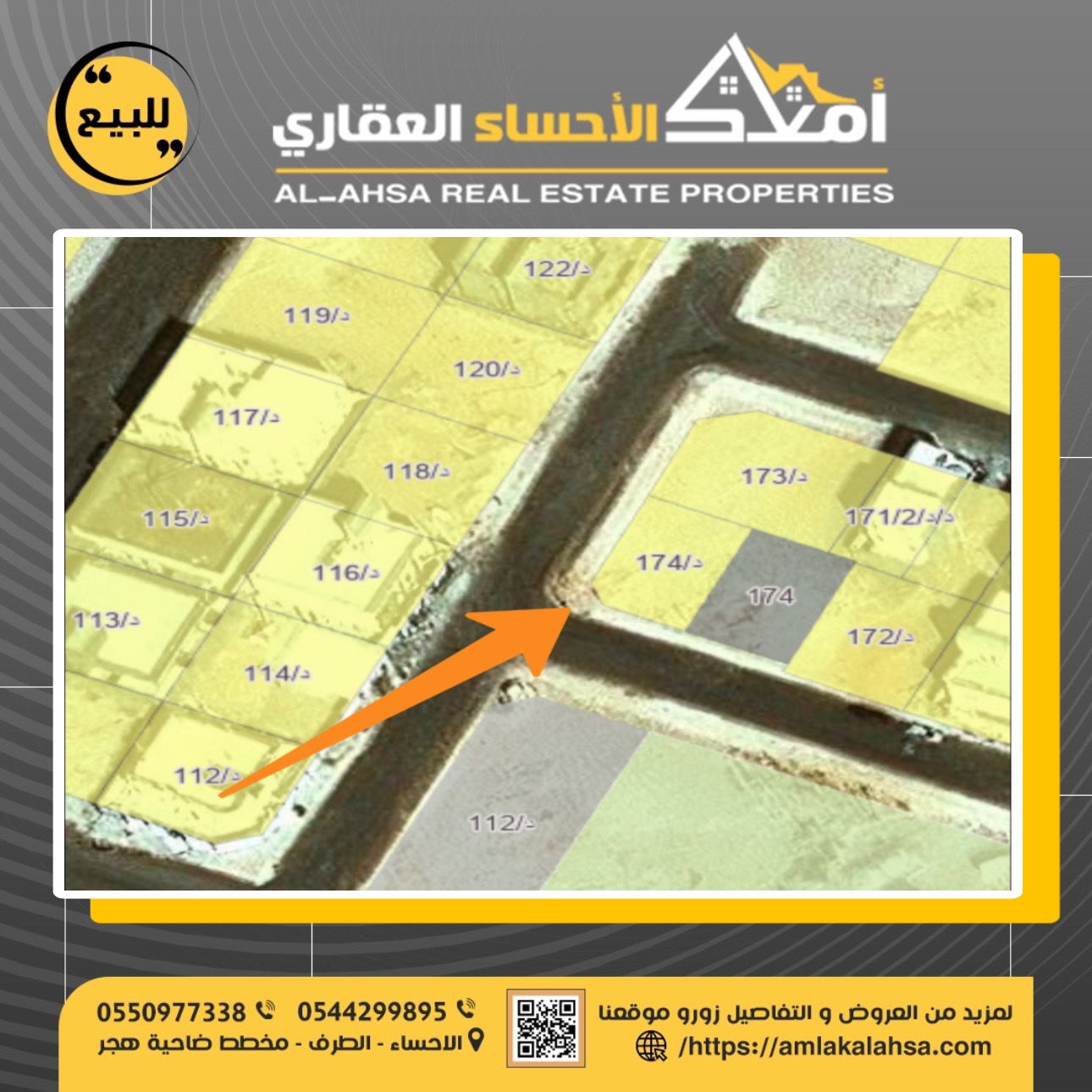 للبيع ارض في حي جواثا ارض رقم 174 \ د مساحة 277 شارع عرض 15 * 15 سعر المتر 1600 …