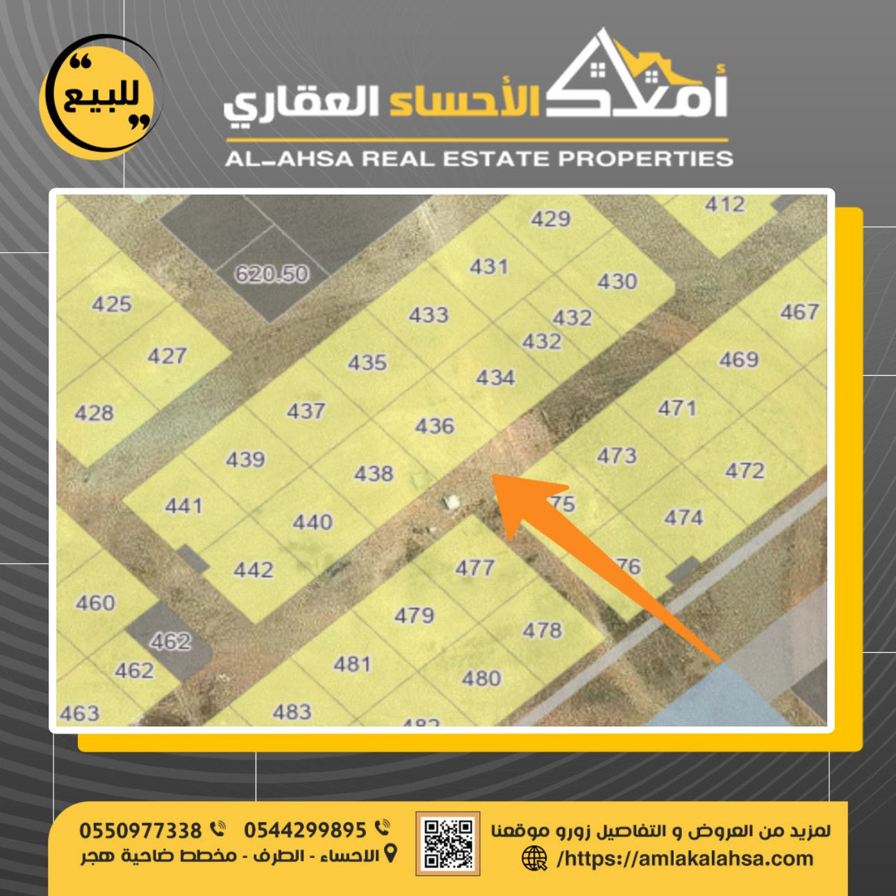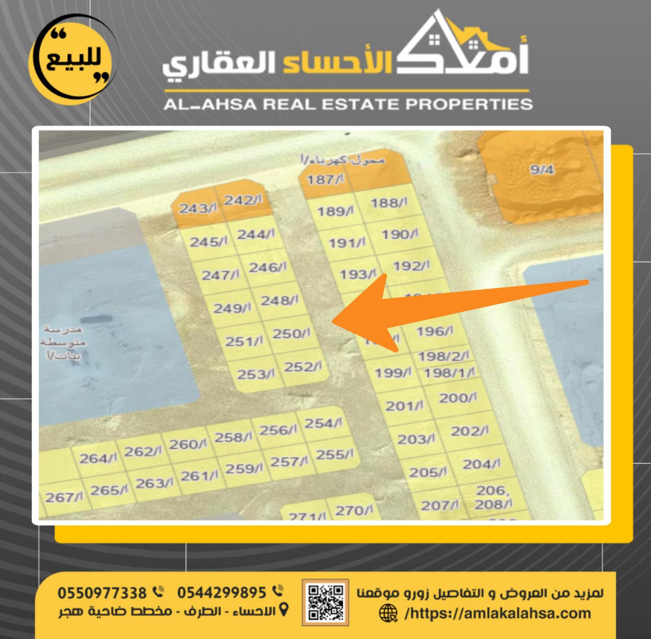 للبيع ارض في حي الامراء بالهفوف ارض رقم 250 \ أ مساحة 400 شارع عرض 15 شرقا الاطوال 20 * ...