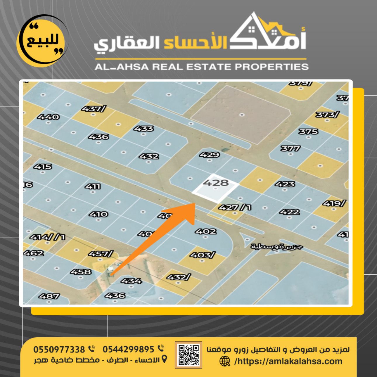 للبيع ارض في الحي الثامن بضاحية هجر ارض رقم 428 \ أ مساحة 367 شارع عرض 30 الاطوال 12 * ...