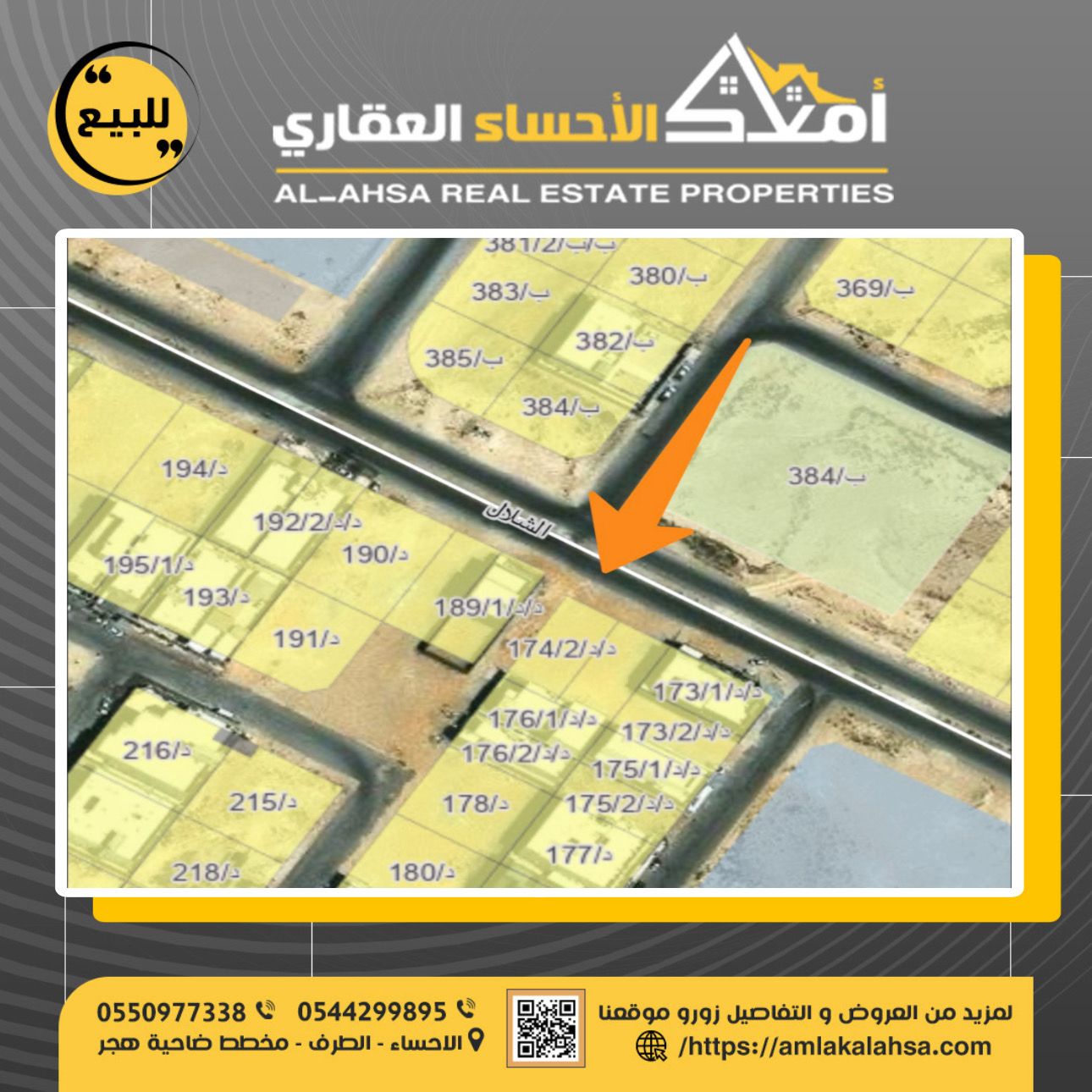 للبيع ارض في حي الصقور بالهفوف ارض رقم 197 \ ج مساحة 833 شارع عرض 20 * 10 السعر 460,000